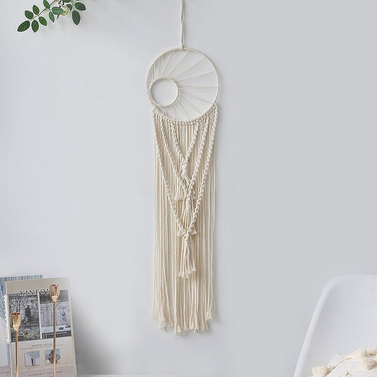 Parmi ces matériaux, les brins (ou fils) de macramé en coton (généralement blanc crème) sont parfaitement adaptés à ce type de création. De plus, l'art du macramé mural et l'esprit bohème ont des valeurs en commun avec la symbolique du capteur de rêves, à savoir la légèreté, la liberté et le bien-être. L'origine du Macramé remonte à des millénaires, c'est l'art de nouer des brins pour confectionner des accessoires de déco, suspensions, bijoux... tout ce que l'art permet d'imaginer ! Une création en macramé est une véritable pièce d'artisanat qui nécessite un savoir-faire unique.