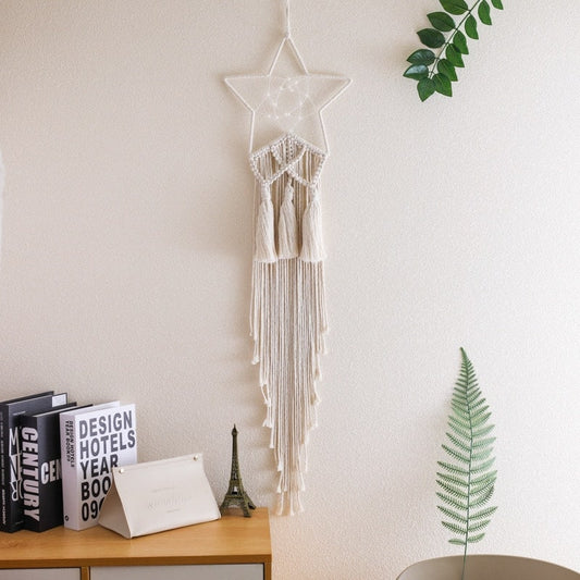 On ne peut parler des Attrape-rêves lune sans mentionner les Attrape-rêve étoilés ! Les capteurs de rêve étoilés sont une déco murale essentielle pour compléter le décor d'une chambre au style bohème. Cette suspension murale fera sensation dans ta pièce à côté d'une création DIY, arbre de vie en lin ou encore des plantes dans une suspension Macramé. Les Attrape-rêve étoilés transformeront le décor de ta maison en une ambiance saine, reposante, et cocooning.